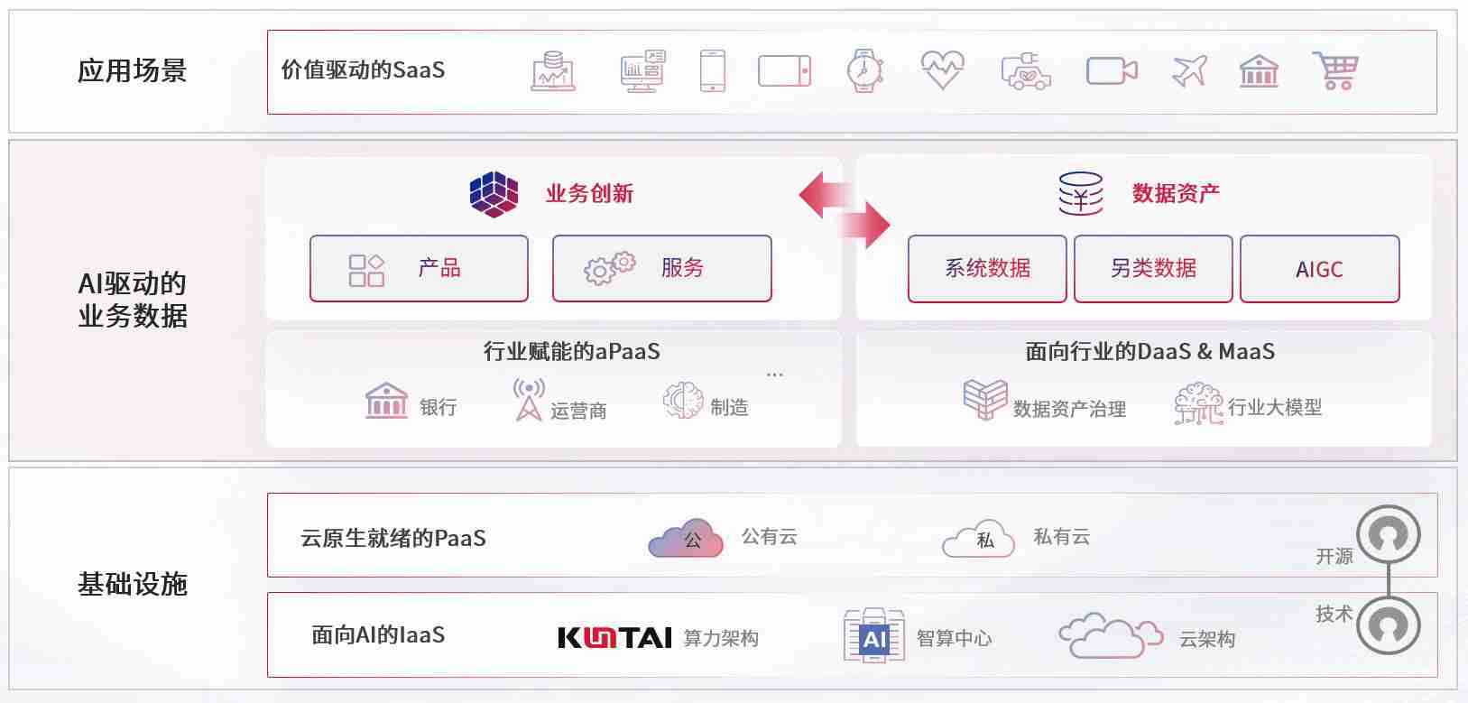 数字时代,,围绕企业数字化转型的关键要素,,blb百乐博数码开创性的提出数云融合战略和技术体系框架,,着力在云原生、、数字原生、、AI原生和信创产业上架构产品和服务能力,,,为处在不同数字化转型阶段的快消零售、、、汽车、、、金融、、医疗、、政企、、教育、、运营商等行业客户提供泛在的敏捷IT能力和融合的数据驱动能力,,,,构建跨界融合创新的数字业务场景和新业务模式,,,助力企业级客户建立面向未来的核心能力和竞争优势,,,,全面推动社会的数字化、、、智能化转型升级。。